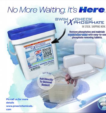 Proact Chemicals introduces Sensafe's phosphate products include Swim Check Fix Phosphate tablets, which are time-release tablets that remove phosphates to prevent algae growth, and Swim Check Phosphate test strips, which are used to measure phosphate levels in pool water. The tablets are a mess-free alternative to liquids, and are placed in the skimmer basket for easy application. The test strips provide quick and reliable results to help monitor water quality.